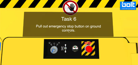 IPAF heeft 9 "taken" in de VR App laten bouwen, waarmee je de voor ingebruikname inspectie doorloopt. Zoals bijvoorbeeld: