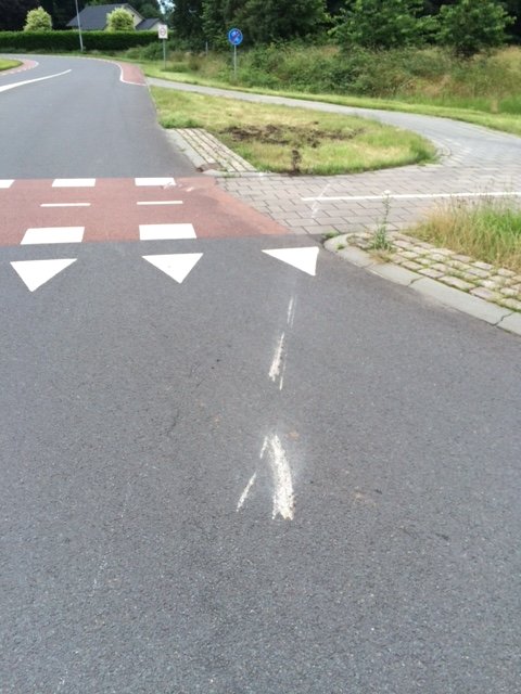 Gelukkig op dat moment geen fietser in de buurt en alleen schade aan de hoogwerker zelf.
