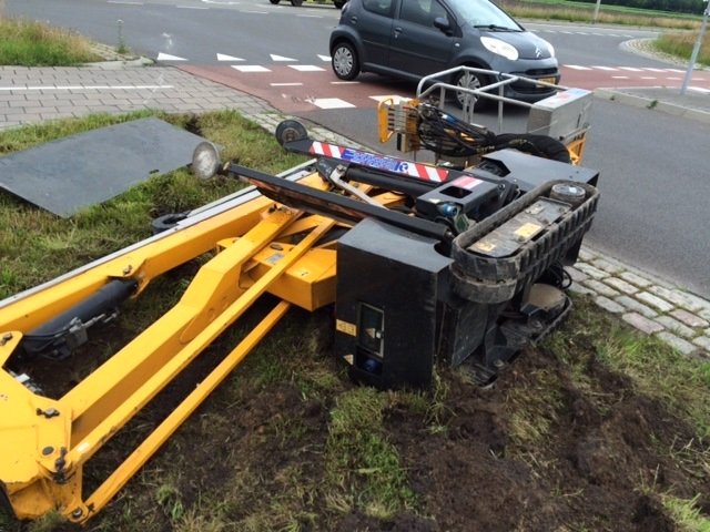 “Gelukkig” zijn er ook wel eens hoogwerkers die omvallen, die alleen zelf schade hebben en hooguit wat schade veroorzaken aan de weg en graskant.